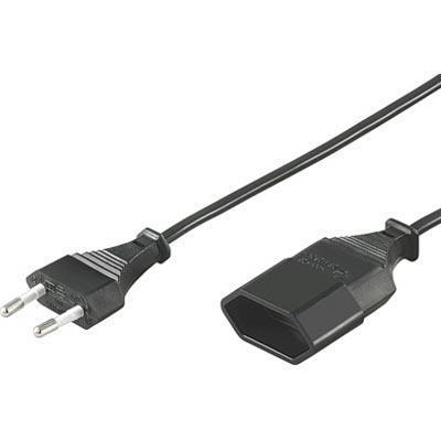 DELTACO ojordad apparatkabel för förlängning mellan enhet och vägguttag, rak CEE 7/16 till rak IEC 60906-1, max 250V/2,5A, 2m, svart