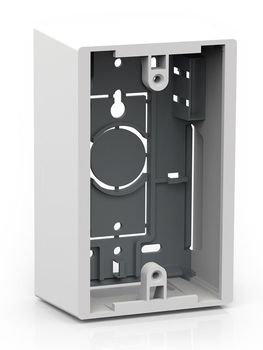 The DECORA® On−Wall Box is a white plastic box for installing a single 1 or 2 gang wall plate. The box is mounted on the wall for applications where in−wall installation is not possible.