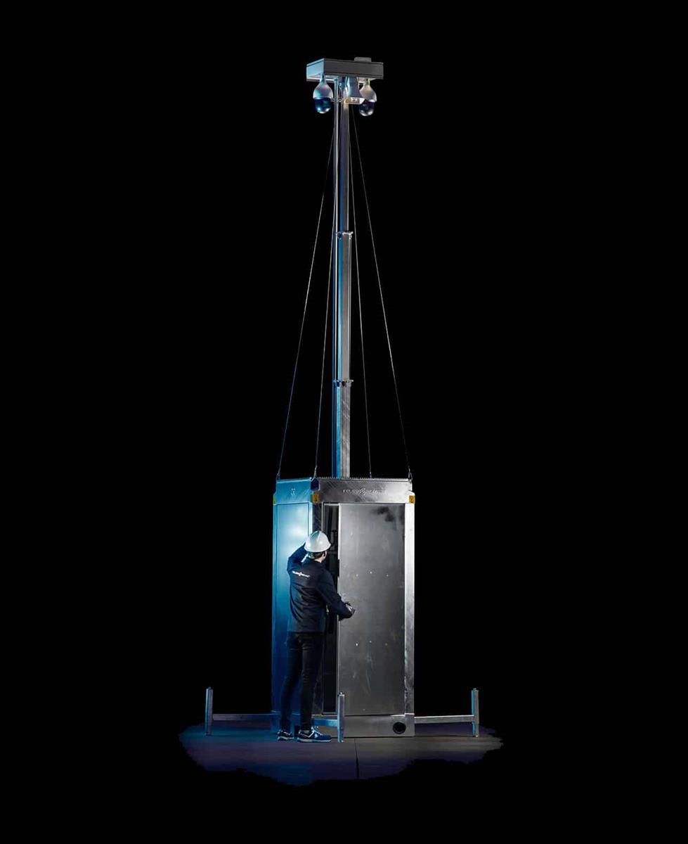 The Mobile Security Box Premium is extendable to 6 metres and is suitable for remote surveillance and lighting. It’s easy to transport to any location that needs to be monitored by remote CCTV. Crowds control in public spaces, construction sites or vacant property monitoring are just some of the cases where our rapid deployment tower is the best basis for your solution.