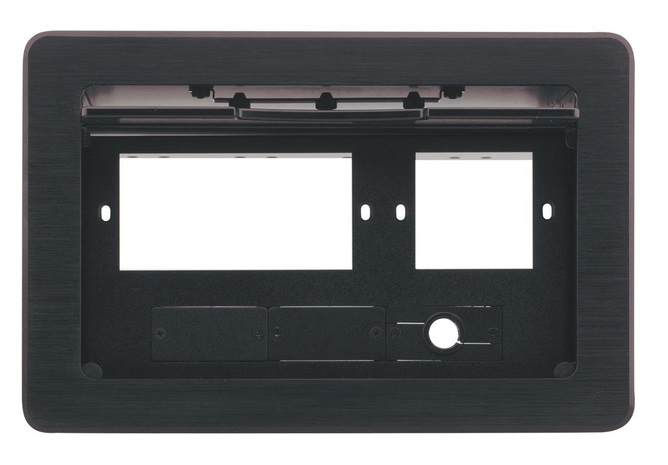 - Inner Frames — T10F–22M can accommodate a combination of up to 2 power sockets, 2 inserts, 1 opening for a Kramer MegaTOOL SID–X1N; T10F–33 contains 3 power sockets and 3 inserts.
