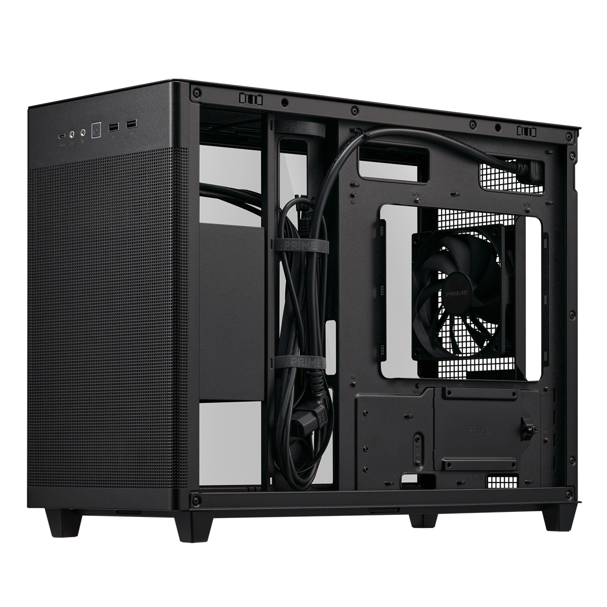 The ASUS Prime AP201 Tempered Glass version is a stylish 33-liter MicroATX case with tool-free side panels, with support for 360 mm coolers, graphics cards up to 338 mm long, and standard ATX PSUs.