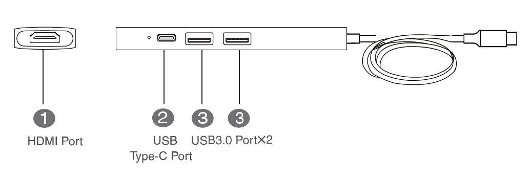 1x 1.5m Type-C cable for connecting to laptop, support charging (up to 65W) via USB-C to laptop