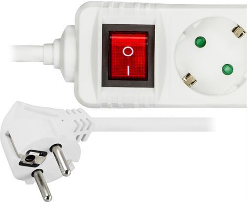 DELTACO Jordat grenuttag med strömbrytare, 3x CEE 7/3, 1x CEE 7/7, barnsäker, 5m, vit