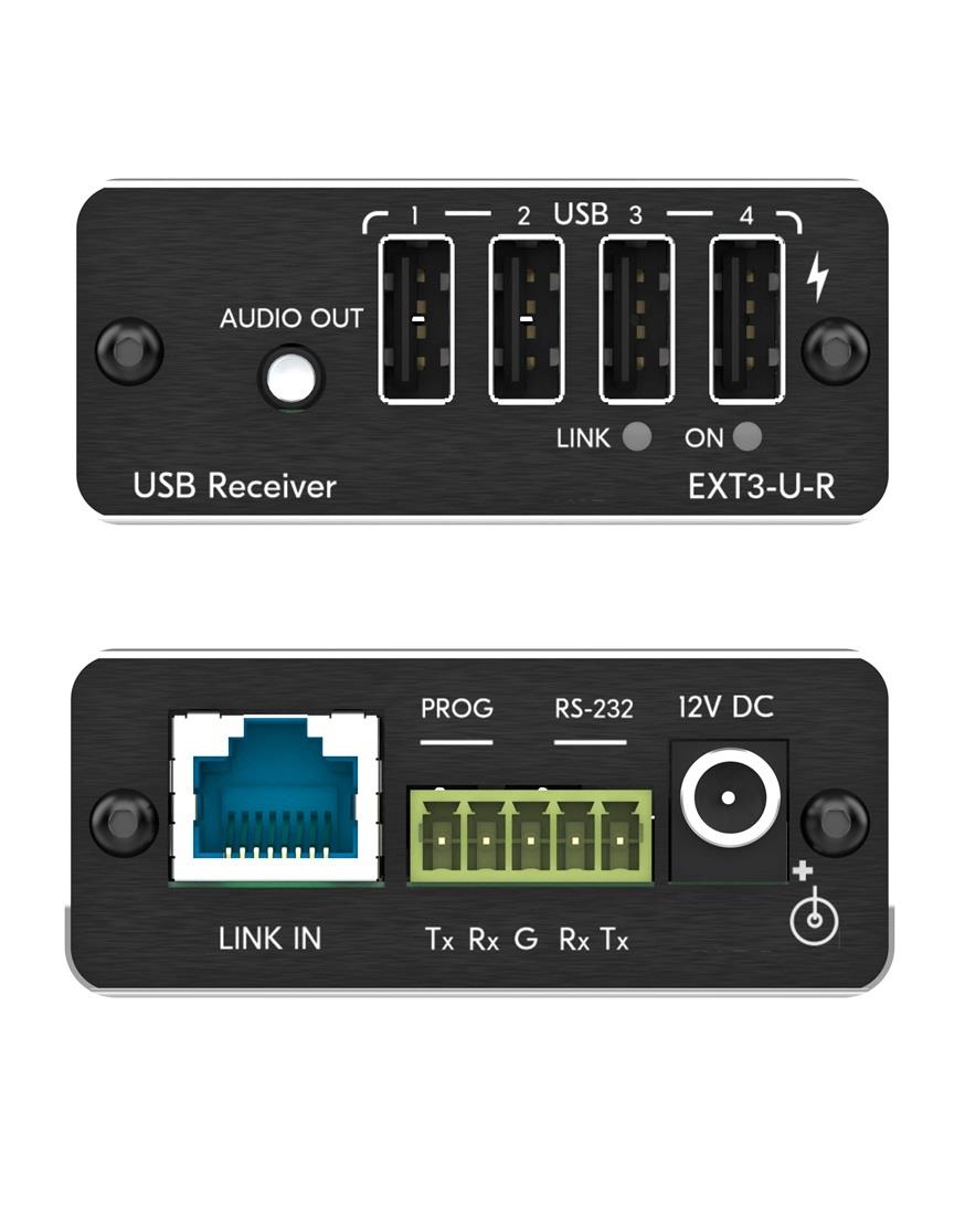 - Remote USB Charging — Fast USB charging of peripheral devices when the receiver is powered by a power supply, and standard USB charging when the receiver is powered by the transmitter via CAT.