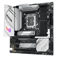 Midsize overperformer: the ROG Strix B760-G Gaming Wi-Fi is a monochrome powerhouse, ready to propel your next mATX rig. It bears the same high-bandwidth connectivity as its trusty counterpart, but diverges with lightning-fast DDR5 memory and buffed power stages to complement high-speed Intel 13th Gen processors. White and silver accents pair perfectly with the ASUS AP201, and retro insignias give it a dash of classic Strix style.