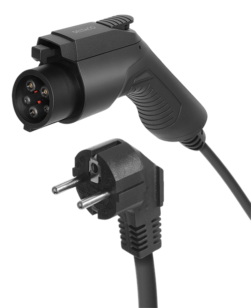 Skyddsklassad enligt IP 66. Kabelns kontrollbox har en inbyggd jordfelsbrytare. Vid jordfel stängs strömmen av.