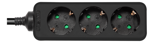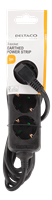 DELTACO Jordat grenuttag, 3x CEE 7/3, 1x CEE 7/7, barnsäker, 3m, svart