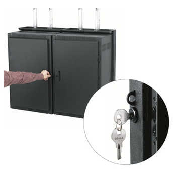 Front mounted latch saves valuable wall space by allowing wall racks to be placed side-by-side, in a corner, or wherever side clearance is an issue. To open, simply pull the convenient front-mounted handle. Unlike time-consuming threaded rods, this unique latch provides keylocked security from the front (keyed differently from optional front door). Easy to install; required for seismic installations.