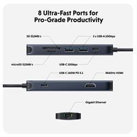 Introducing the HyperDrive® Next 8 USB-C Hub - the ultimate connectivity solution for creators, editors, photographers, and more. With extended 4K 60 Hz monitor support for Mac, PC, and Chromebook, 8 ultra-fast ports, and lightning-fast data transfers, unleash your creative potential anywhere. Experience 2X faster file transfers using the 10 Gbps USB ports and 3X faster photo and video transfers with microSD and SD 4.0. Benefit from 40% more power with PD 3.1 140 W power pass-through, ensuring efficient charging. Make a sustainable choice with EcoSmart™ technology.