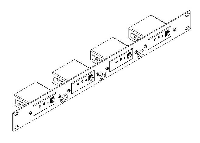 19−inch rack adapter for mounting 4 Kramer Pico TOOLS™ into a 1U rack space.