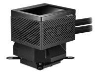 The 8th Gen Asetek pump sports a 3-phase motor for higher flow and quieter operation, riding on a larger cold plate ideally sized for the latest Intel and AMD processors.