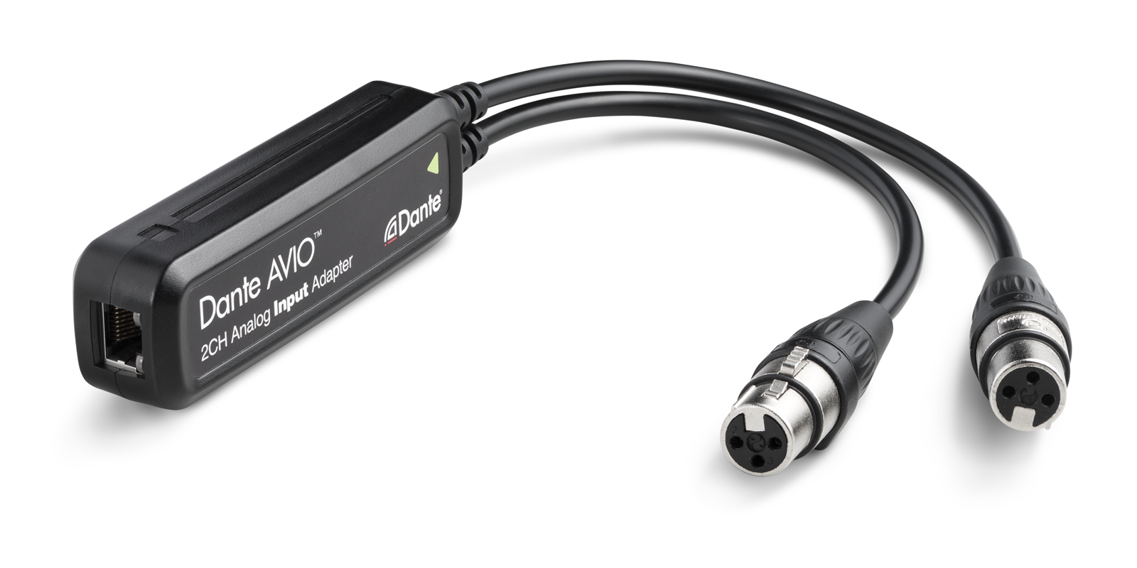 Dante AVIO Analog Adapters are available as balanced line-level single or dual-channel input or output adapters, with high-quality XLR connectors. Use the Analog Dante AVIO Adapters to add Dante networking to analog amplifiers, powered loudspeakers, signal processors, music players or any other analog audio device, for hum-free digital signal distribution throughout your audio network.