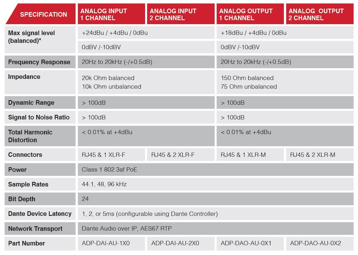 DANTE AVIO ANALOG INPUT & OUTPUT