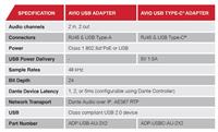 Dante AVIO USB Adapters support 2 x 2 channels of bidirectional audio, allowing PCs and mobile devices to playout and record audio with any Dante-enabled devices over a standard IP network. Use audio applications like media players, conferencing software, presentations and recorders with network-connected speakers, microphones, mixers and DSPs. Cost effective, compact and built for the road, the Dante AVIO family of adapters bring the modern network connectivity that every audio pro needs in their toolbox.