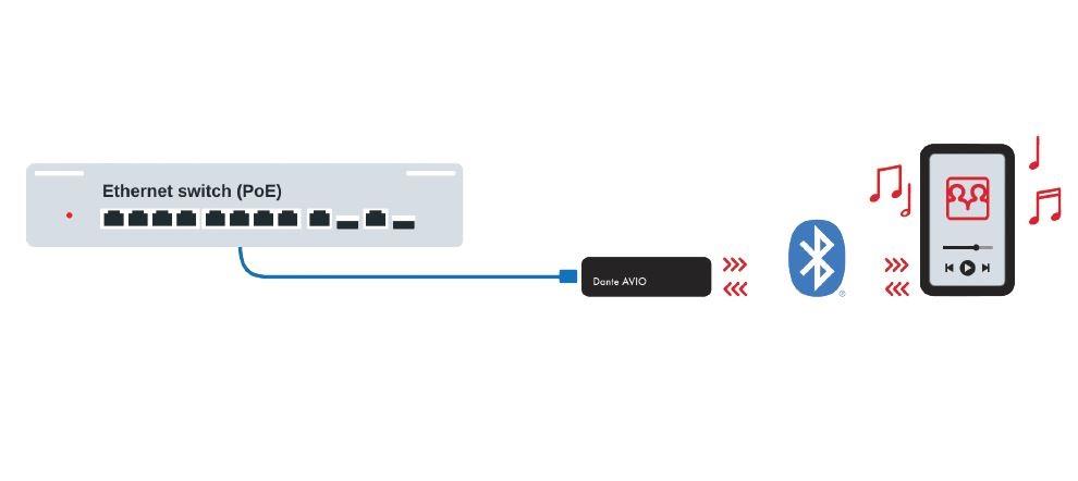 Each Dante AVIO Bluetooth® adapter is a complete, high performance Dante device, delivering all the automation and ease of use that have made Dante the most popular audio networking solution worldwide. The Dante AVIO Bluetooth® adapter is automatically discovered and ready to use when connected, and no separate power supplies are required – just use a common PoE (Power over Ethernet) switch and any Dante AVIO adapter is ready to go.