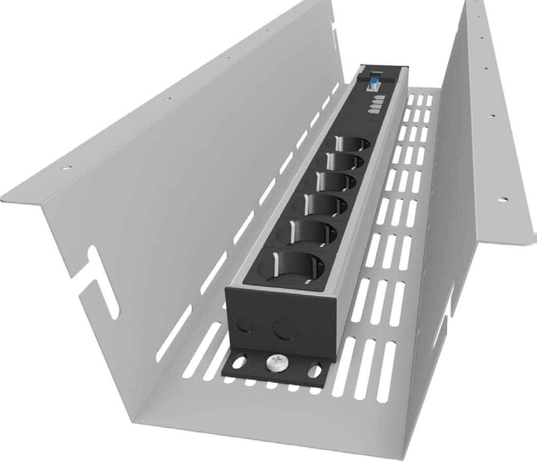 Complement with Axessline power strip for optional center mounting in the tray.