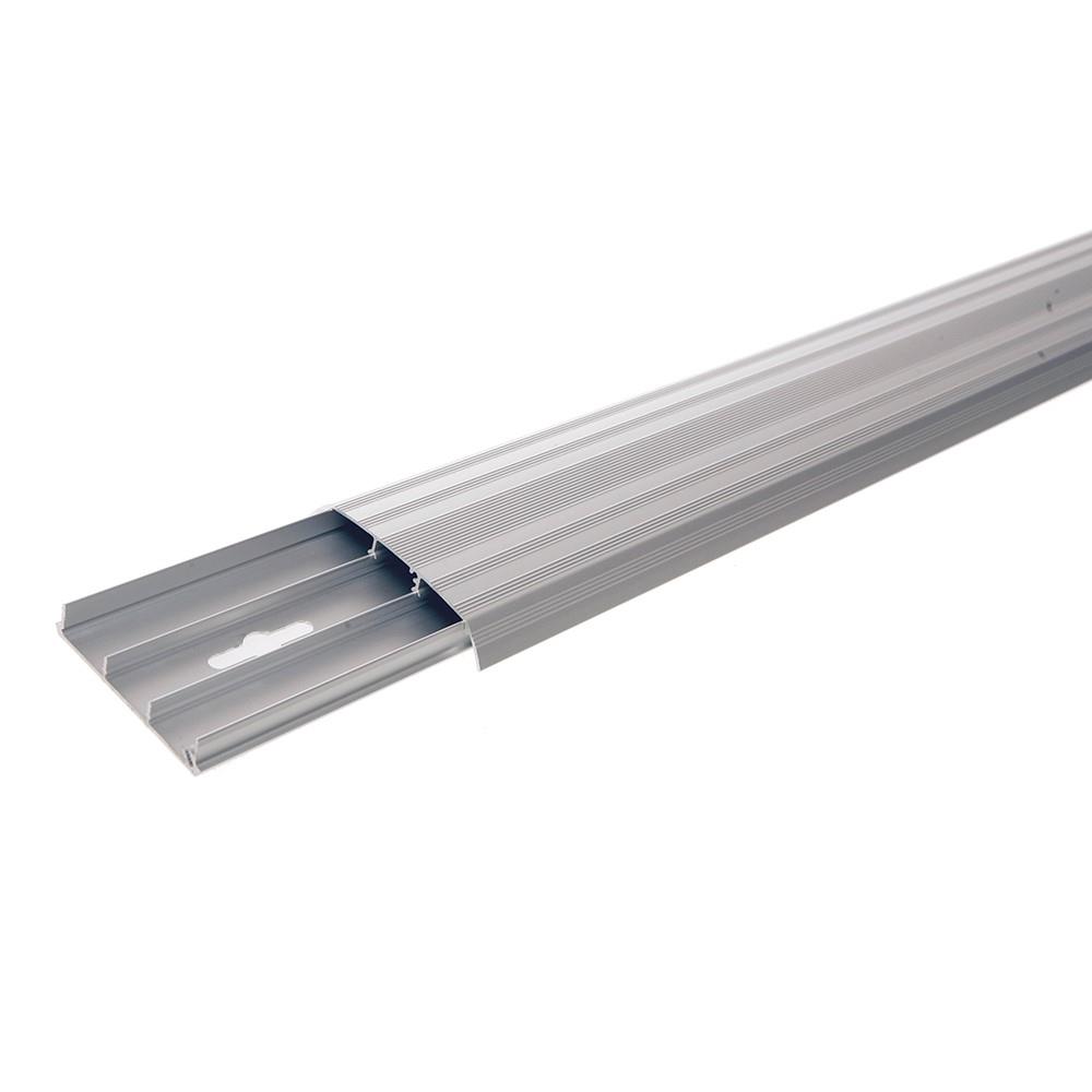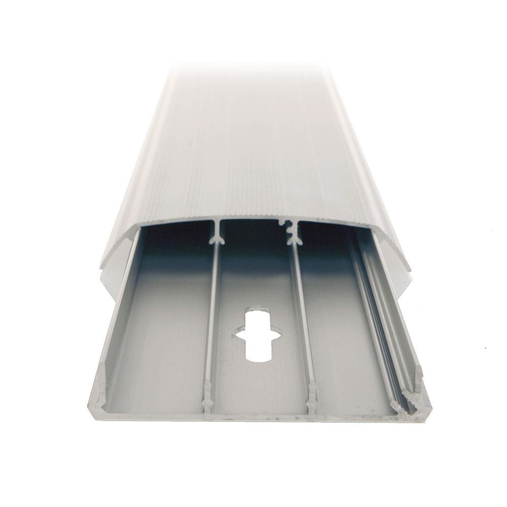 Elegant floor tube with cover that can be opened for optimal accessibility when drawing cables. A very stable design in aluminium which withstands office traffic or passage of other rolling materials. The floor tube has three integrated separate cable tubes. It can be secured easily with double-adhesive assembly tape or with a screw through the existing hole.