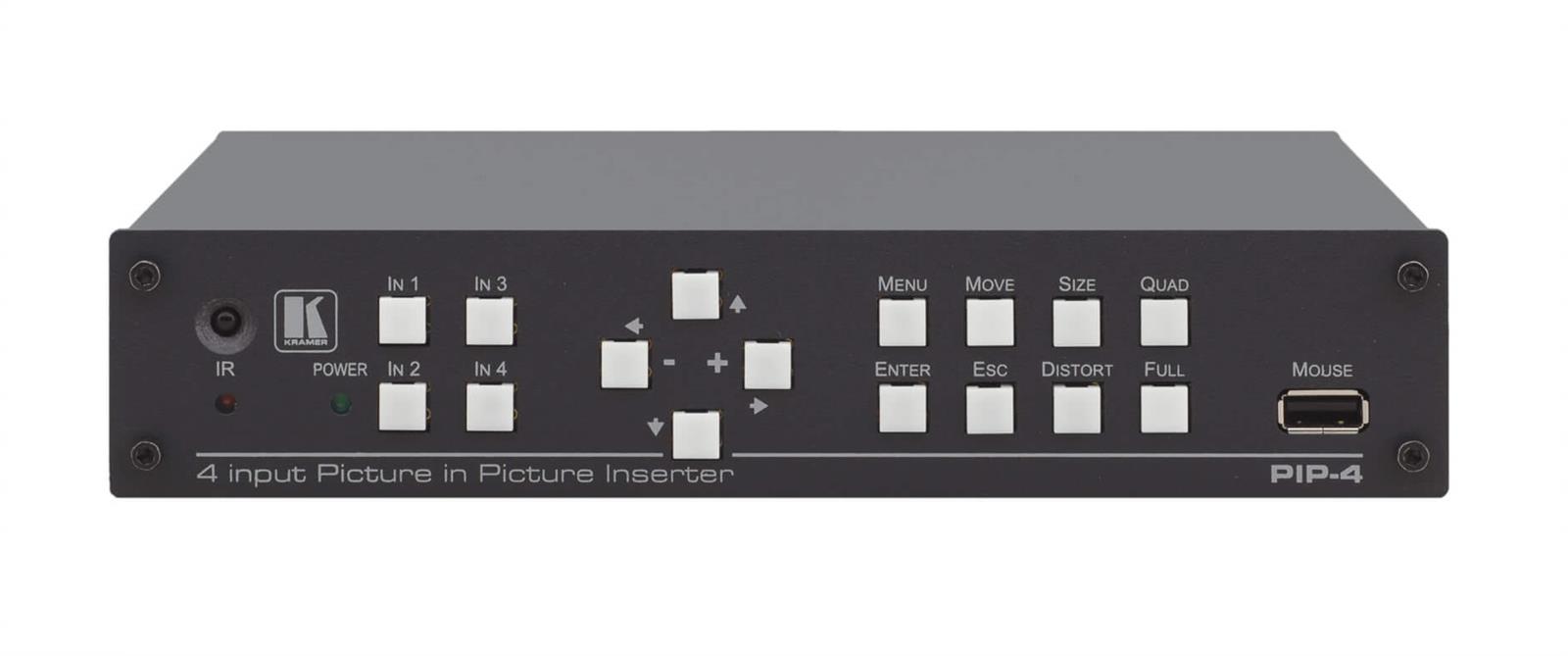 The PIP−4 is a high−performance picture−in−picture inserter for composite video signals. The PIP output can display up to four images simultaneously, each of which can be sized and positioned individually.