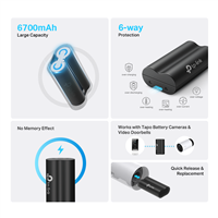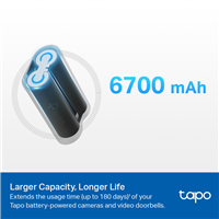 6700mAh Large Capacity-Extends the usage time(up to 180 days)† of your Tapo battery-powered cameras and video doorbells.