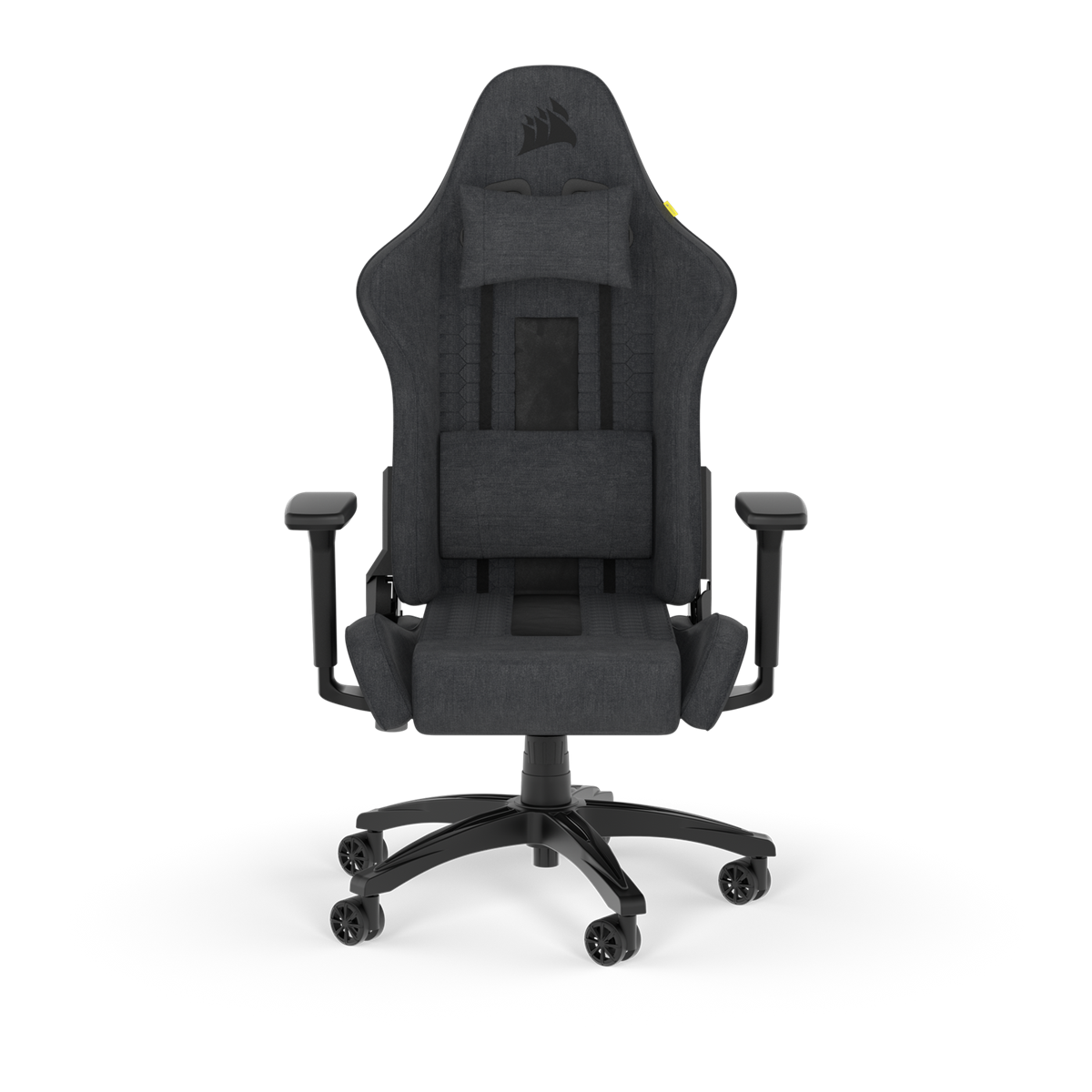 Recline into comfort whether playing or working with the CORSAIR TC100 RELAXED Gaming Chair - Fabric, featuring a racing-inspired design with a wider seat surface. The chair’s plush exterior lets you play in cool comfort. With both an included adjustable lumbar support pillow and detachable memory foam neck pillow, you have all the support you need while gaming. The seat back reclines from 90° to 150°, so you can lean way back after a hard-won victory. After setting the chair up for your exact needs with a class 4 gas lift with 100mm height range and adjustable armrests, the TC100 RELAXED makes it easy to sit back and game on.