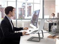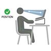 - Elevated position at eye level reduces neck and back pains.