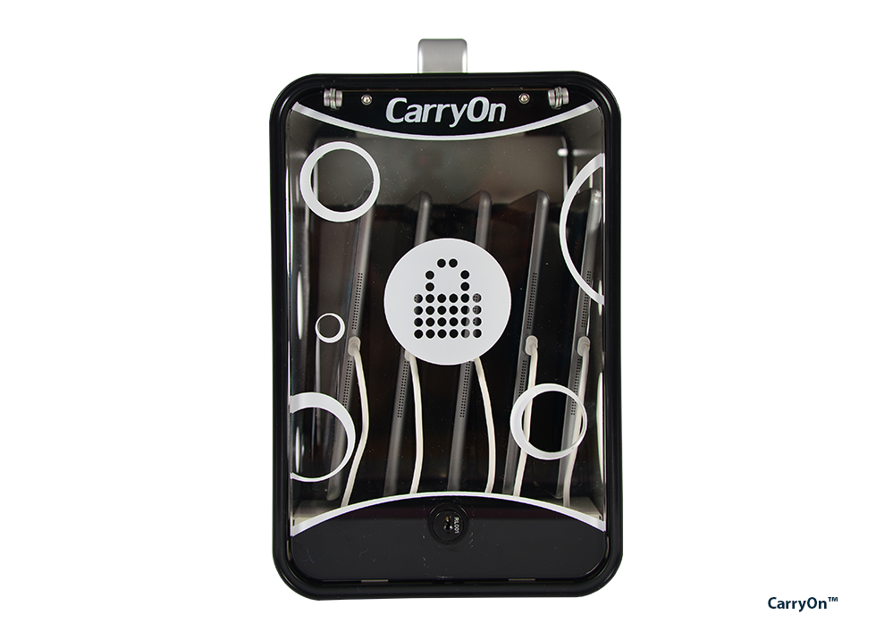 - Ultra-mobile. Compact. Easy. LocknCharge offers a unique perspective to physically managing mobile devices. The CarryOn is taking portability to the next CarryOn-walllevel. The CarryOn allows