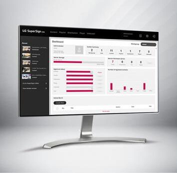 LG SuperSign Cloud is a cloud-based content management solution(CMS) for integrated digital signage management. Through LG SuperSign Cloud, users can remotely control multiple displays*, create and distribute content tailored to each space anytime anywhere without being restricted by time and location**.