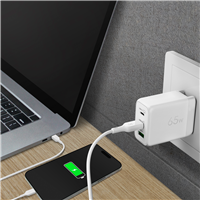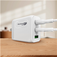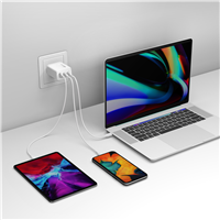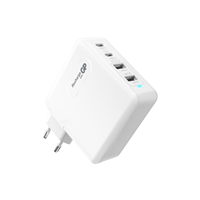 GP GaN PD 65W Charger låter dig ladda upp till tre enheter samtidigt. Den är nästan hälften så liten som en traditonell laptop-laddare men genererar ändå hela 65W. Perfekt att ha med sig på semestern eller i arbetet.
