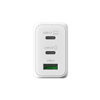 GP:s väggladdare laddar upp till tre enheter samtidigt. Med 2 USB-C ingångar och 1 USB-A ingång kan du smidigt ladda exempelvis mobilitelefonen, laptopen eller spelkontrollen.