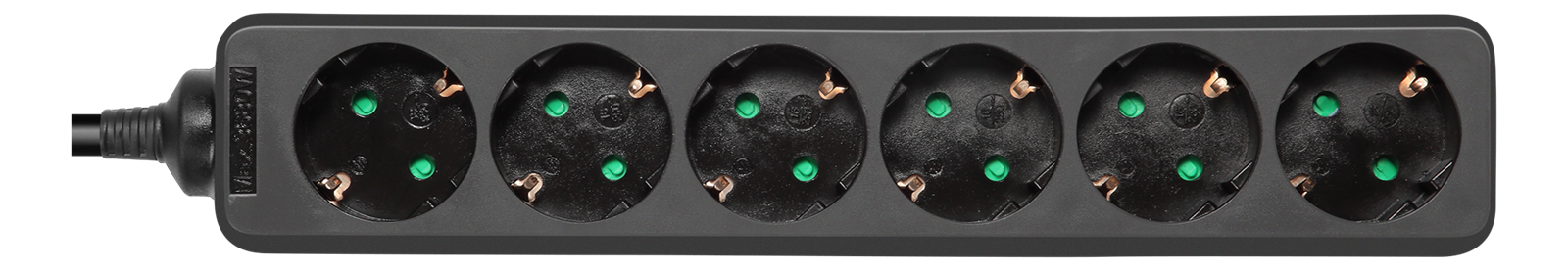 Jordat grenuttag med 6-uttag. FSC - certifierad förpackning Testad och certifierad av Intertek Effekt: Max 250V AC, max 16 A, max 3680 W Förpackningen innehåller: Jordat grenuttag
